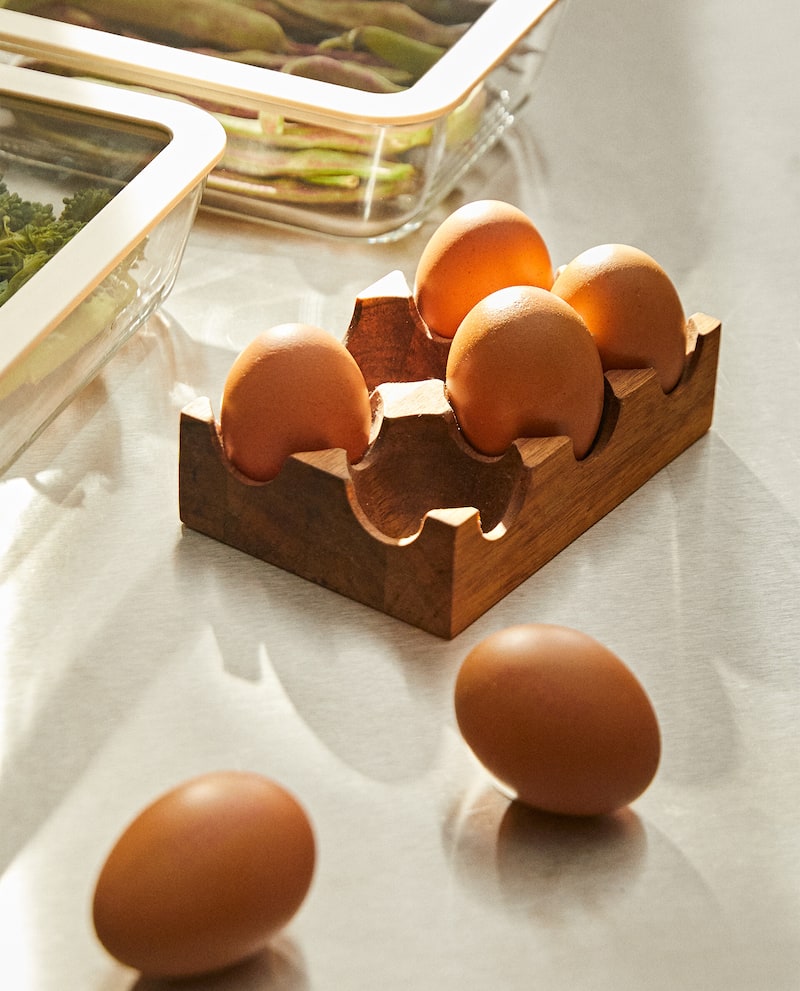 Dile adiós a las hueveras de cartón o plástico y da el salto a un material más higiénico, duradero y sostenible. La huevera de madera de acacia, diseñada para contener seis huevos, no solo es práctica, sino que también aporta un toque de elegancia rústica a tu cocina. Por tan solo 12,99 euros, puedes hacerte con esta pieza o bien combinar varias.