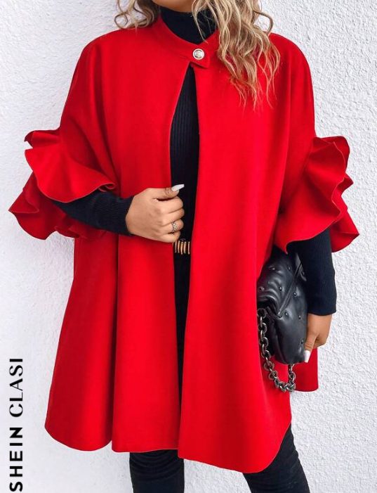 Esta es una de esas prendas que conseguirán captar todas las miradas. Se trata de un abrigo de carácter clásico con el que podrás lucir al máximo tu estilo preppy. En forma de capa, se abrocha en la zona del cuello y destaca gracias a sus mangas con volantes, así como por su tono rojo pasión. En cuanto a su precio, lo puedes conseguir ya en Shein por tan solo 23 euros. No te querrás quedar sin él.