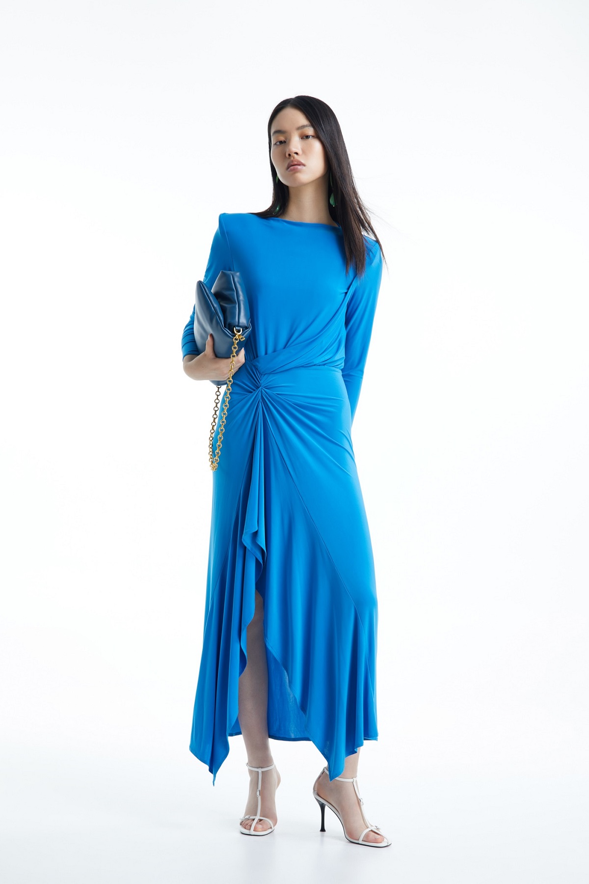 Hay pocos vestidos que puedan dejarnos tan sorprendidas como este. Es la clara prueba de que el otoño y el invierno ya no son épocas del año en las que predominan los colores cálidos. Dales vida a las épocas más frías del año con este maravilloso vestido drapeado azul. Arrasarás allá por donde pases. Su precio es 35,99 euros.