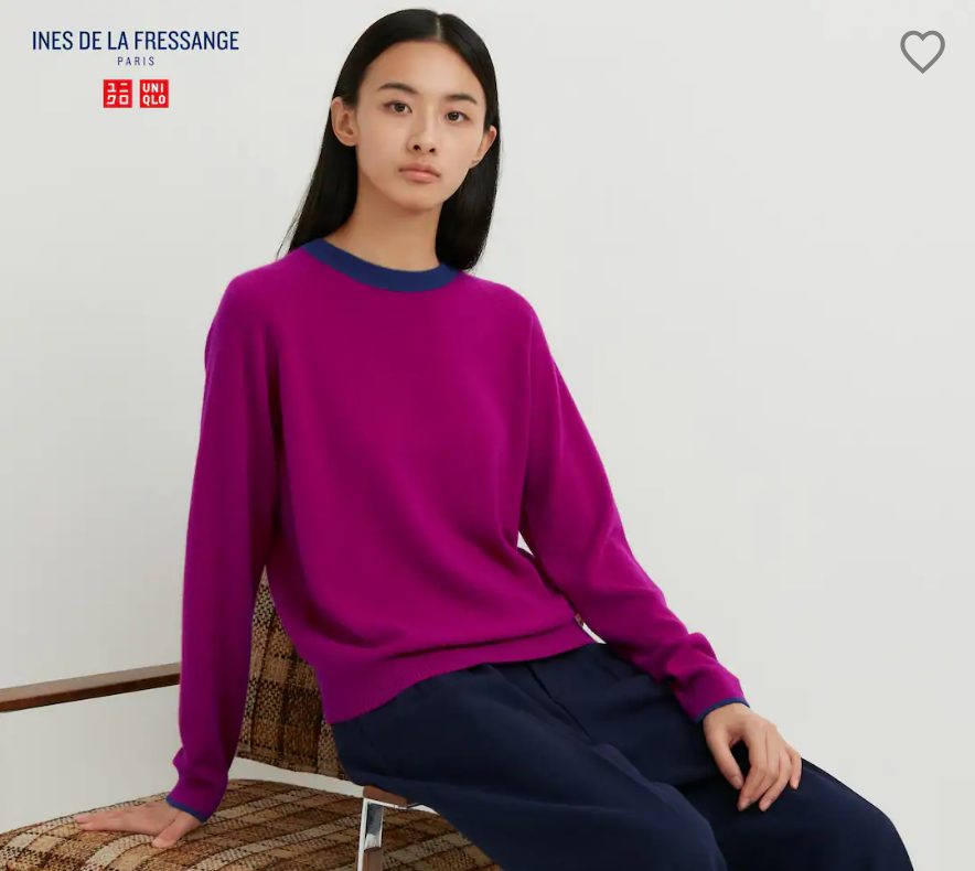 Otro de los jerseys de cashmere más demandados y que está disponible en Uniqlo a buen precio es este. De cuello redondo y manga larga, consigue llamar la atención gracias a su combinación de dos tonos. Por un lado, cuenta con la superficie del jersey en tono magenta. Sin embargo, destaca por los detalles azul oscuro que tiene en el cuello y en la parte de las mangas. En este caso, su precio asciende a 129,90 euros. Sin embargo, de nuevo, será una gran inversión que te durará toda la vida. Sin duda, merece la pena darle una oportunidad.