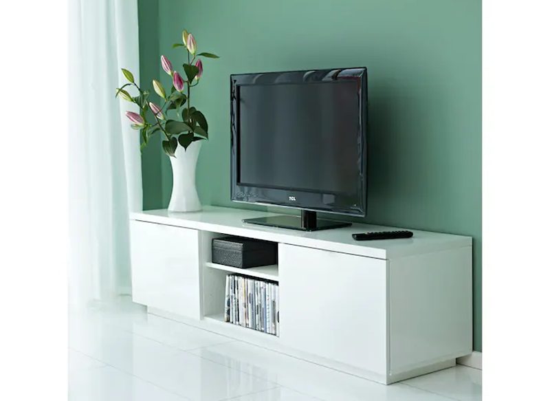 Si no te convencen los muebles anteriores, otra opción a tener en cuenta es el mueble de TV BYAS, en este caso disponible tan solo en un color blanco de alto brillo y que cuenta con unas dimensiones de 160 x 42 x 45 cm, un modelo con un toque un tanto más moderno y actual.