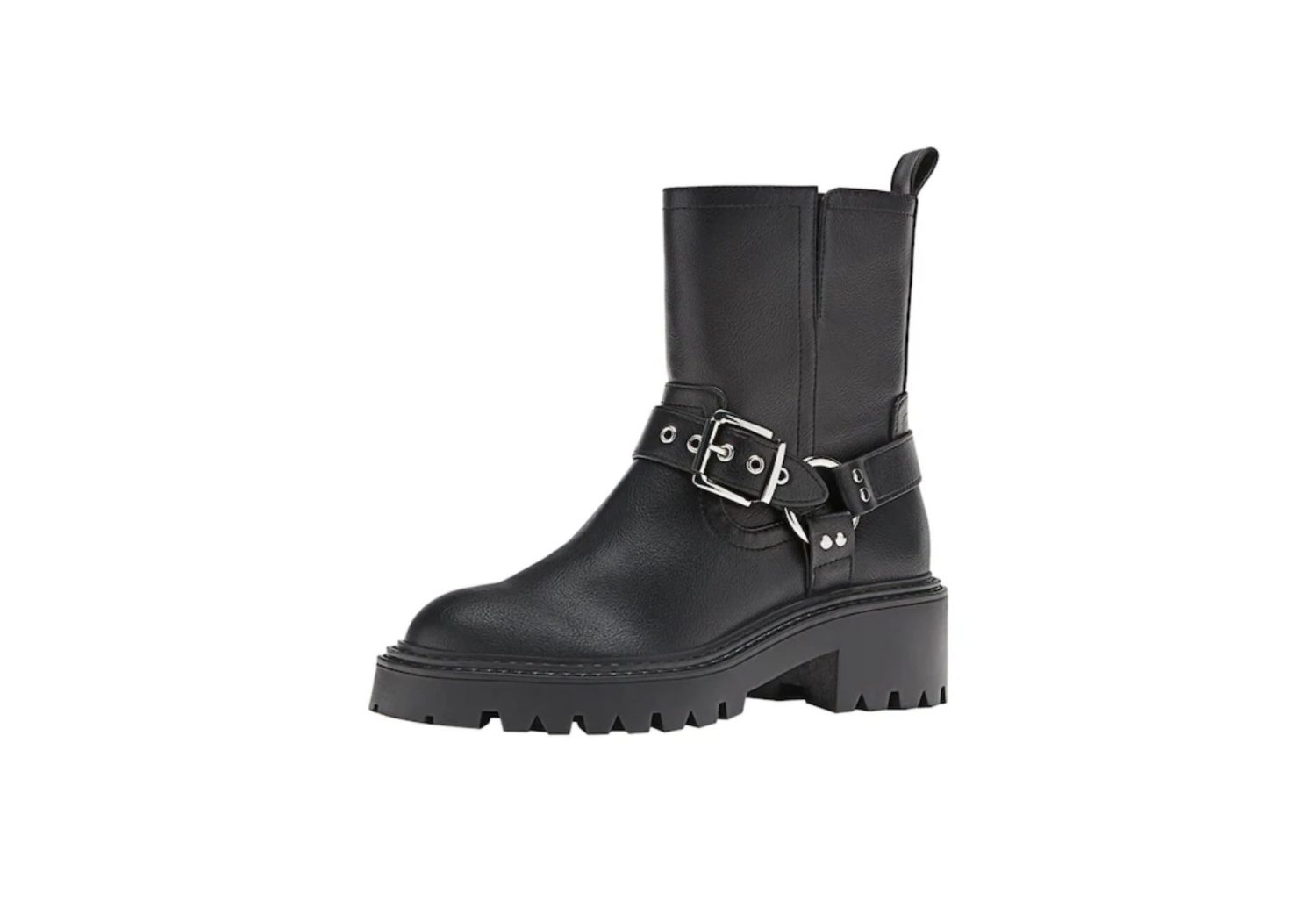 Las aberturas en los laterales aportan un toque distintivo, mientras que las hebillas en el empeine y el tirador en la parte trasera añaden un carácter audaz y rockero a tu look. La suela dentada tipo track, con una altura de piso de 5,8 cm, proporciona tracción y estilo.
