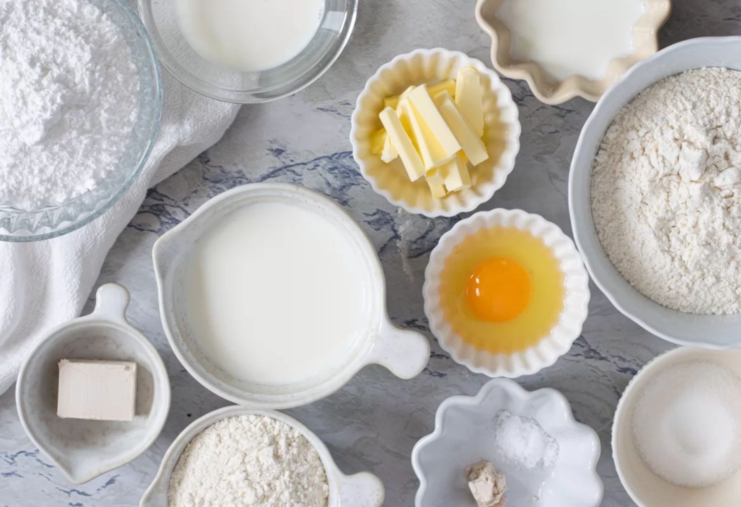Para la masa de arranque, necesitarás 150 g de leche entera, 25 g de levadura fresca y 80 g de harina de fuerza.