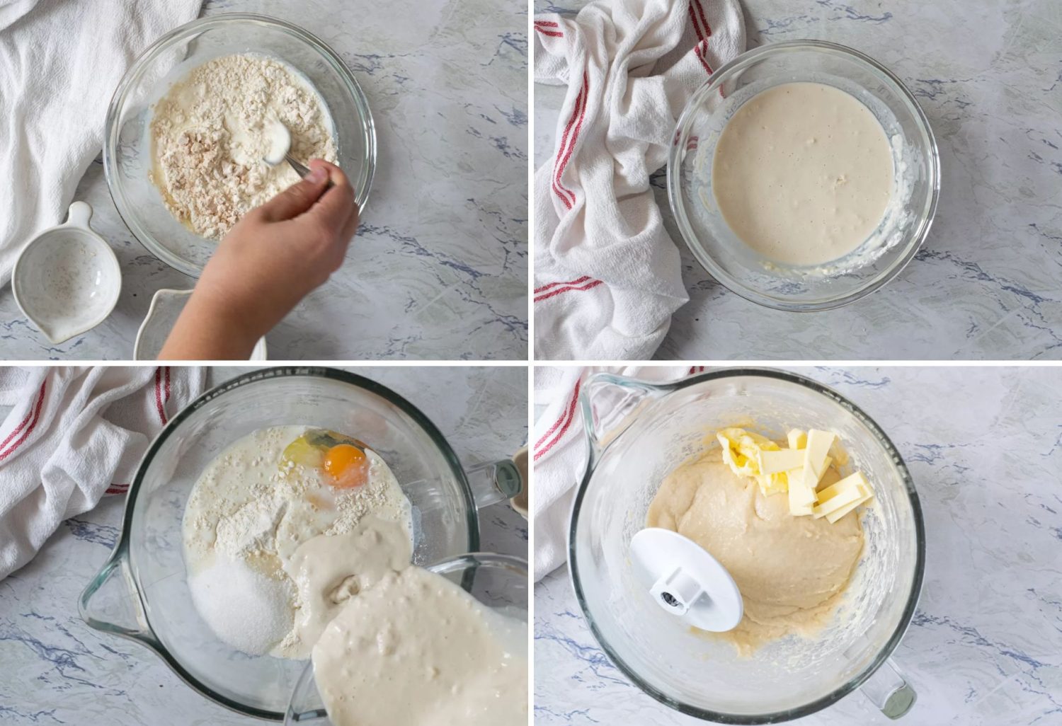 Para empezar, nos sumergimos en el apasionante proceso de hacer donuts caseros. Todo comienza con la creación de la masa de arranque. En un bol, combinamos 150 gramos de leche entera, 25 gramos de levadura fresca y 80 gramos de harina de fuerza. Mezclamos estos ingredientes minuciosamente y dejamos reposar la mezcla durante unos 10-15 minutos. Sabrás que está lista cuando veas que se forman pequeñas burbujas en la superficie. Una vez alcanzado este punto, reservamos la masa de arranque y nos adentramos en la elaboración de la masa principal.