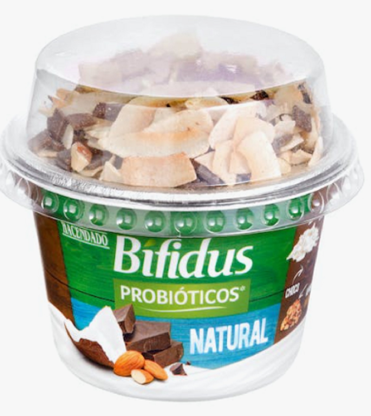 9Bífidus natural probiótico Hacendado con coco, almendras y chocolate