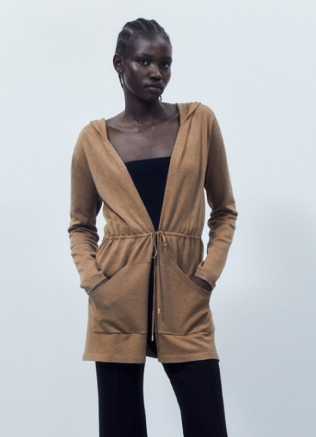 Sfera nos devuelve a la adolescencia con esta preciosa chaqueta larga con capucha. Aquellos tiempos en los que las capuchas eran las protagonistas de nuestros outfits pueden regresar, incluso para la ofi. ¿Estás en una oficina con un ambiente relajado? ¿Reina el buen rollo y la motivación? Entonces vas a ir perfecta con esta chaqueta larga. Puedes dar la misma apariencia de formal con esta chaqueta larga que con cualquier otra prenda asociada a los trajes de toda la vida. ¡Pruébala y verás! Su precio es 21,99 euros.