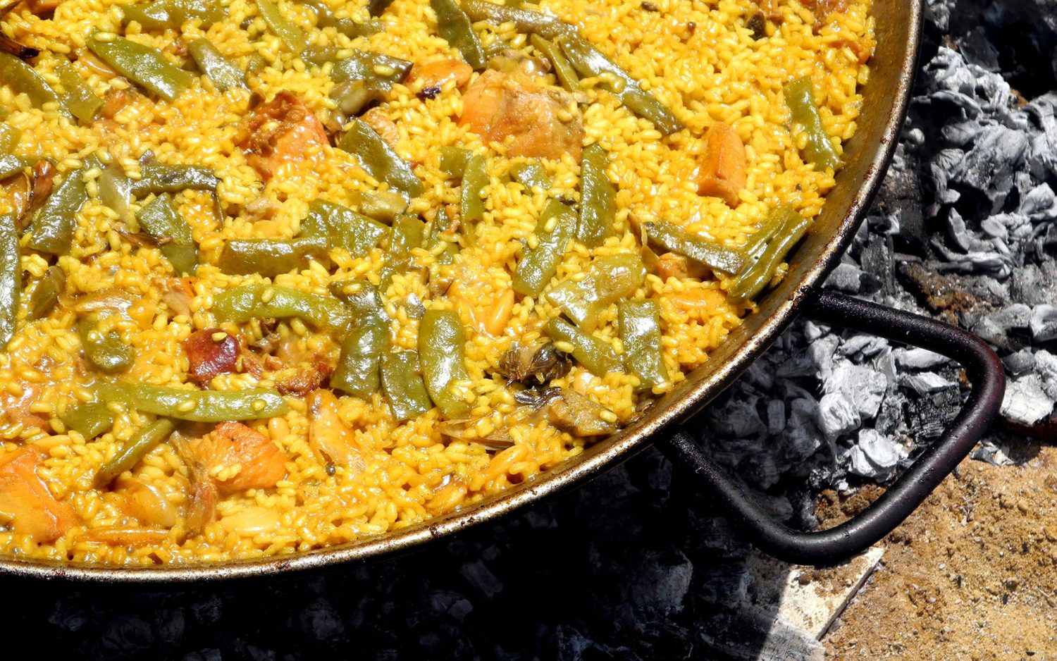 La paella se compone principalmente de arroz, ajo y cebolla, además de algunas especies y verduras como los guisantes y los tomates, además de carne o pescado, como el pollo o el calamar. La verdadera paella se cocina de forma tradicional en una paellera de hierro colado, sobre unas brasas o fuego de leña que le da un sabor único.