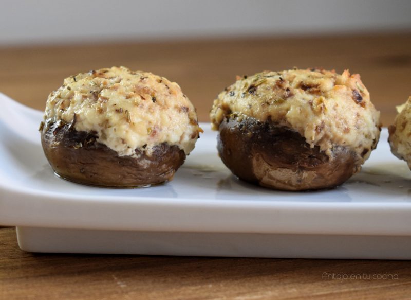 2CHAMPIÑONES RELLENOS DE PUERRO Y QUESO AZUL