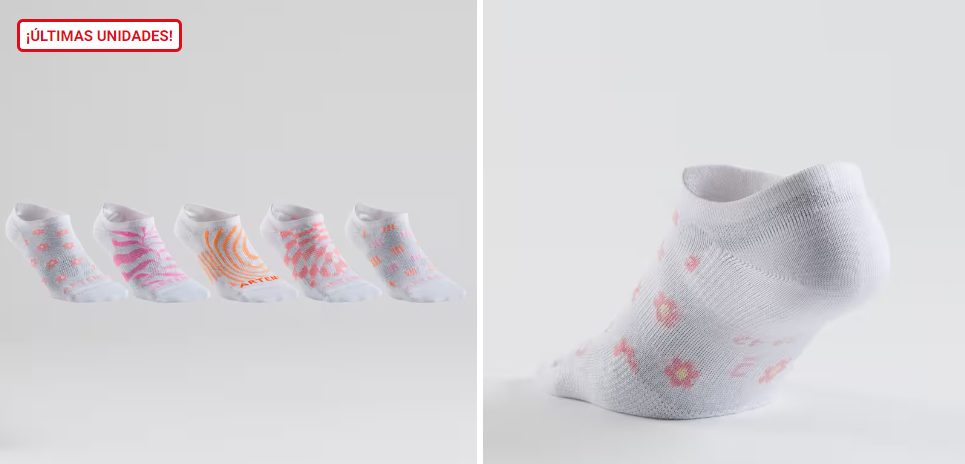 Para jugar al pádel y tenerlo todo controlado, es necesario pensar hasta en el más mínimo detalle. Por este motivo, otros accesorios que no pueden faltar para completar tu outfit deportivo son los calcetines. En este caso, unos de los que más llaman la atención son estos, cortos y con diseño floral. Disponibles en distintos tonos, ideales para combinarlos con todos tus looks, son cómodos, resistentes y adaptados para este deporte. En cuanto a su precio, el pack de 5 cuesta ahora 4,99 euros en lugar de 7,99.