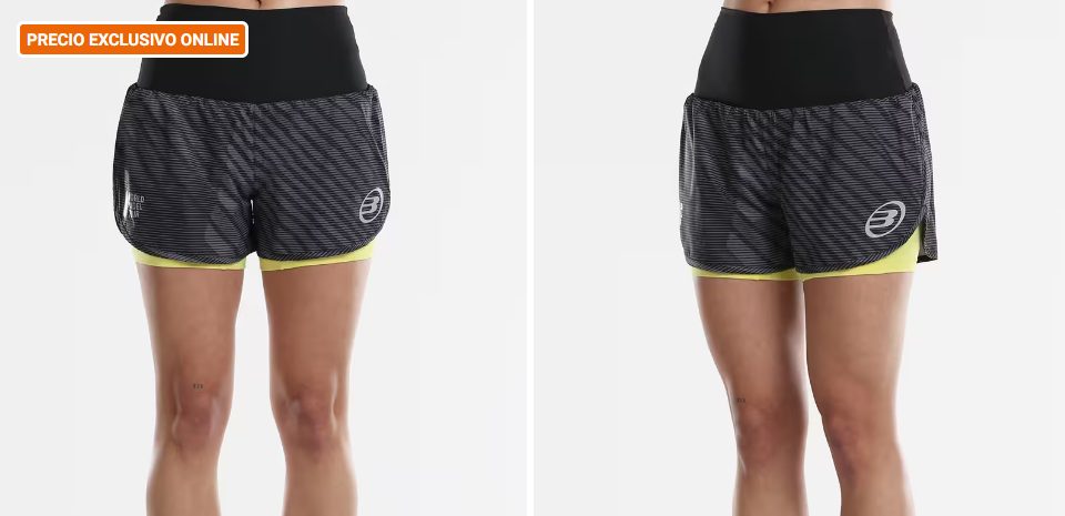 En el caso de que necesites una prenda deportiva corta, pero la falda aún te resulte algo incómoda porque no estás acostumbrada, otra de las prendas que no podrán faltar en tu armario es este short deportivo de pádel. Disponible en color negro con pantalón interior en tono neón, se trata de una opción cómoda, con cintura elástica y que incorpora tecnologías Binamic, de libertad de movimientos, y Quickerdy, de transpiración. En cuanto a su precio, lo puedes conseguir por solo 34,99 euros en lugar de 48,99.