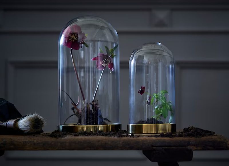 Se trata de una pieza de decoración formada por un vidrio y su base que tiene un tamaño de 19 cm y se vende por solo 9,99 euros. En ella se pueden exponer bonitos objetos y recuerdos, pero también usarla para dar un toque acogedor con una guirnalda luminosa a pilas bajo la campana de vidrio. Para Halloween te recomendamos introducir una flor con pétalos en tonos oscuros o negros.
