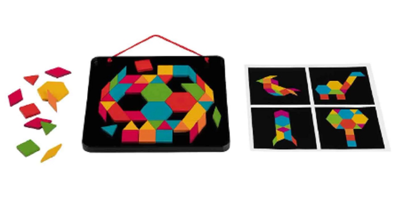 Otro producto pensado para que los niños alcancen su máximo potencial. Tiene 54 piezas de formas geométricas que estimularán de forma lúdica la motricidad fina y la lógica. Una manera auténtica de que los niños se vayan convirtiendo poco a poco en pequeños adultos. Los colores y las formas geométricas son dos de las cosas que más los divierte. Este artículo incluye 52 formas geométricas, base de metal y plantilla estampada por ambas caras. Medidas: 194 x 194 x 6 mm. Su precio es 9,99 euros. La edad recomendada para su uso es a partir de los 3 años.