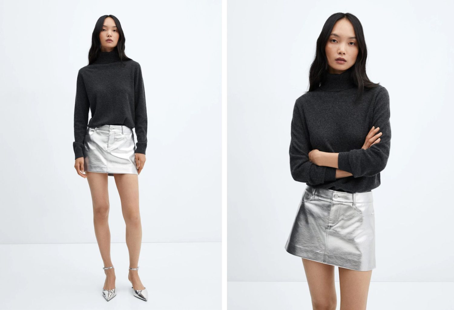 Esta falda corta «foil» irradia estilo y personalidad. Con su efecto metalizado, esta prenda captura miradas y añade un toque de brillo a tu vestuario.