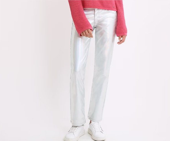 Pantalón recto de mujer metalizado