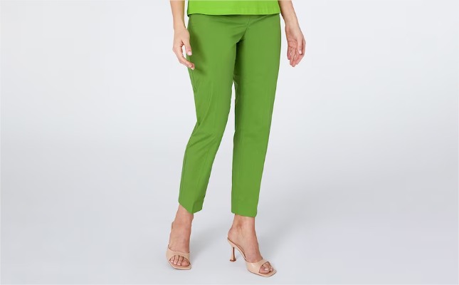 Pantalón recto de mujer de algodón elástico en Verde