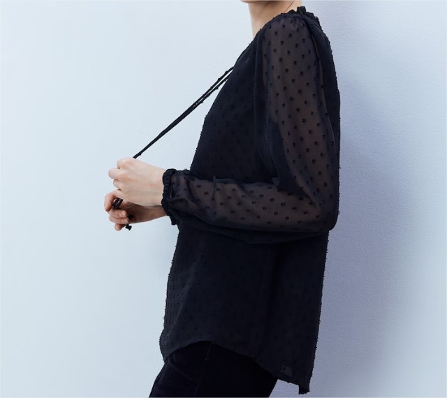 La Blusa Plumeti Gomas es una delicia visual con un diseño que evoca sofisticación y delicadeza. Su tono negro contrasta maravillosamente con la textura plumeti, ofreciendo un equilibrio perfecto entre elegancia y comodidad.