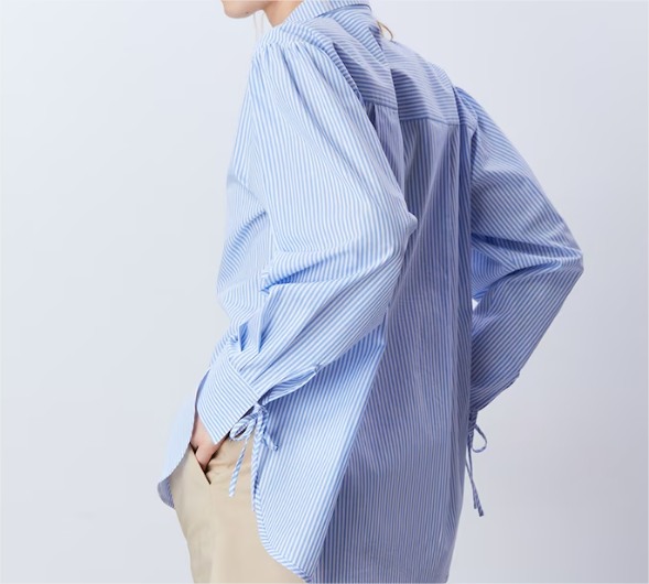 Con un aire marinero, la Camisa Volumen Rayas de Mujer encanta a primera vista. Su patrón de rayas azules combina con un diseño de volumen que destaca, ideal para quienes desean añadir un toque único a su vestuario diario.