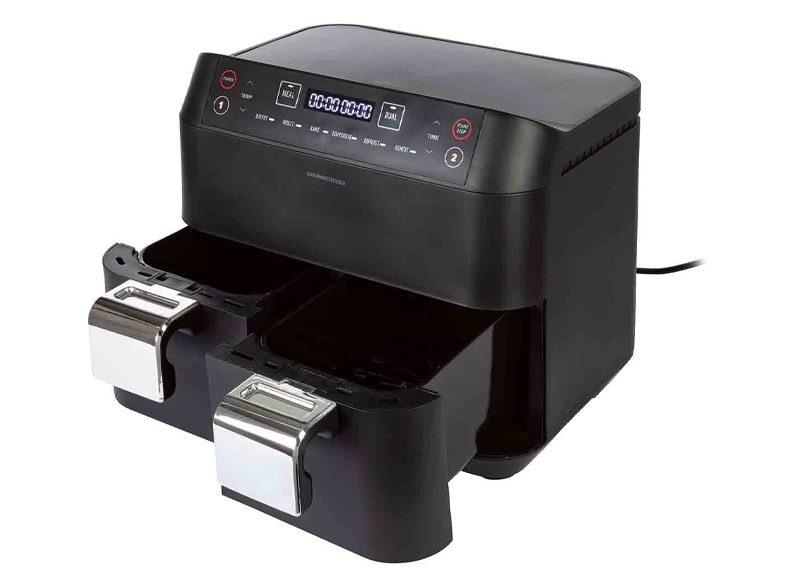 A la venta en Lidl por 139,99 euros, cuenta con 6 programas preestablecidos y modo manual para comidas variadas, permitiendo de esta forma acerca de una preparación baja en grasa y sin olor con circulación de aire caliente. Dispone de pantalla táctil LED, además de contar con bandejas y cestas para patatas fritas aptas para lavavajillas.