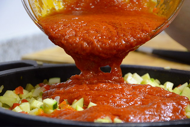 Cocina la mezcla a fuego lento durante unos 20-30 minutos, removiendo ocasionalmente, hasta que los tomates se hayan deshecho y la mezcla tenga una textura más espesa y homogénea. Este es el momento en el que los sabores se concentran y el pisto adquiere su sabor característico.