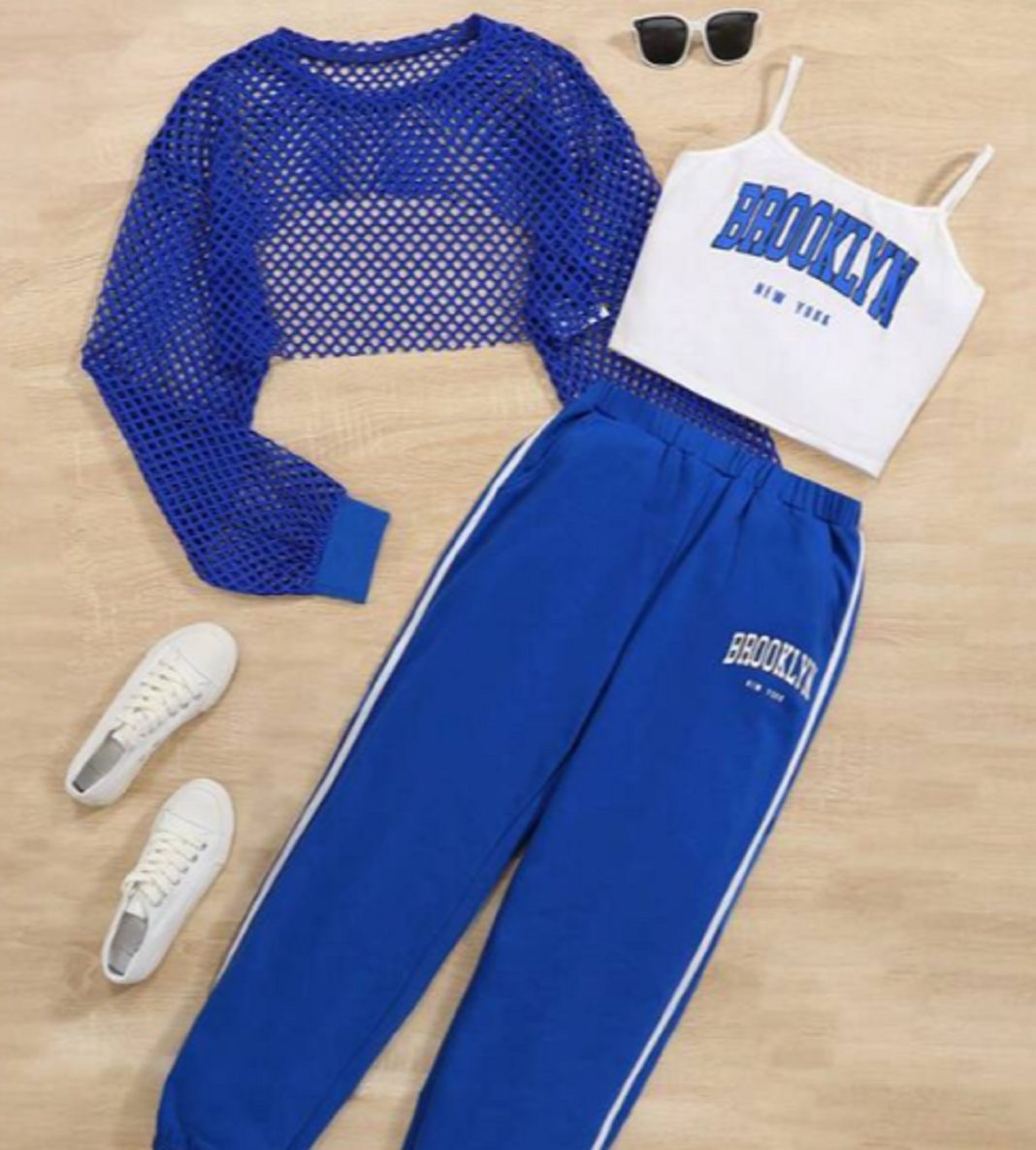 7Shein: Chica adolescente Top de tirantes con estampado de letra & Pantalones deportivos de malla con top