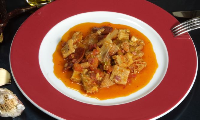 - Coloca los callos cocidos y escurridos en la cazuela con la salsa.
