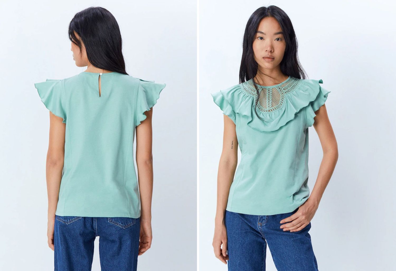 7Camiseta de manga corta: Un toque romántico en verde agua por menos de 10€