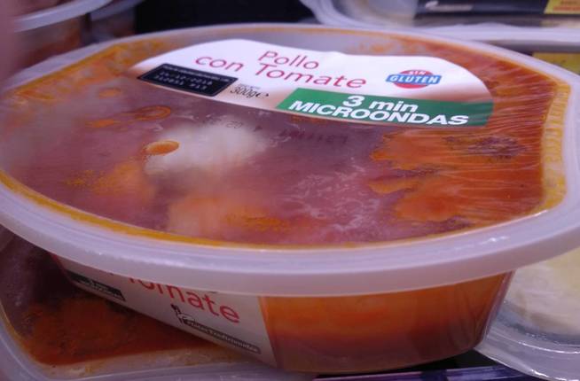 Un buen ejemplo lo tenemos en este pollo con tomate. Troceado y bañado en salsa de tomate casera, aportará nutrientes y apenas calorías, manteniendo el sabor de toda la vida. Su precio es de unos 2,50 euros.