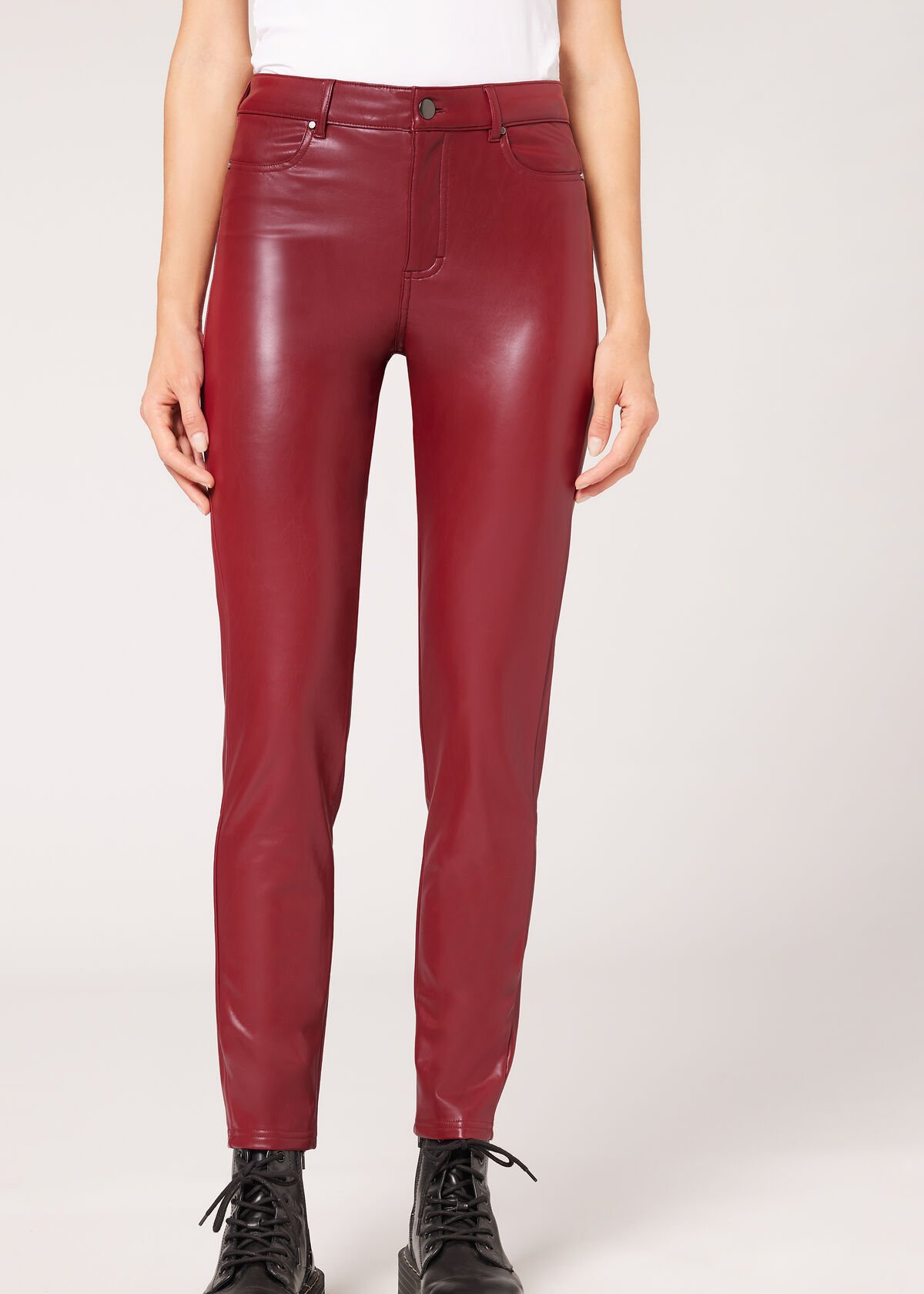 Si lo tuyo es el estio vintage, no querrás dejar pasar la oportunidad de hacerte con estos leggins de Calzedonia. También disponibles dentro de la sección de novedades de la tienda, cuentan con un bonito y llamativo color rojo, son de diseño recto y destacan por su acabado efecto piel. Además, en su interior son térmicos, por lo que podrás lucirlos sin problema todo el invierno. En cuanto a su precio, los encontrarás por solo 39,95 euros.