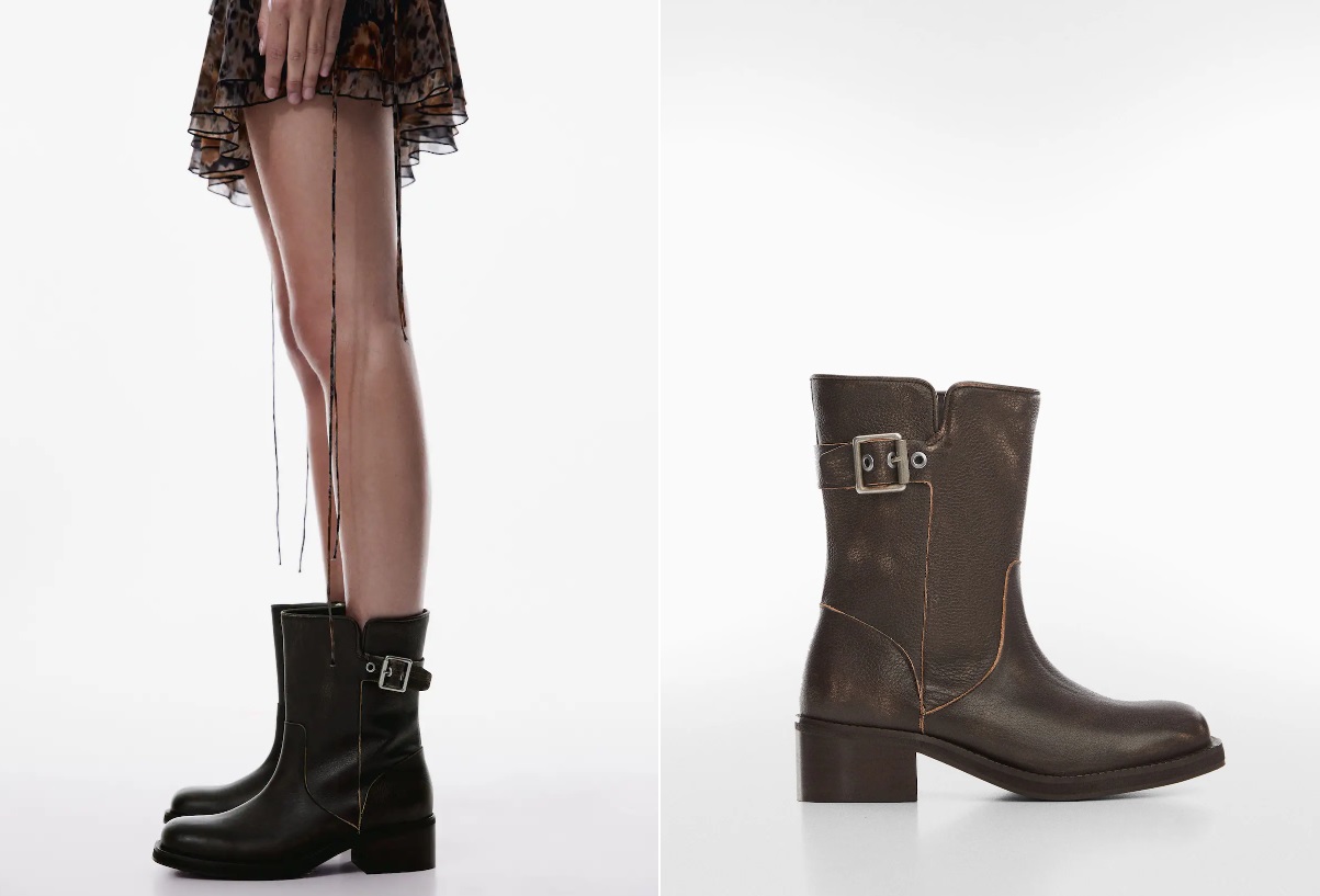 Esta belleza con efecto desgastado es una de las más originales de la firma. De caña media, punta redonda, flat y con una hebilla decorativa tiene todo lo que hay que tener para convertirte frente al resto en esa mujer que está dispuesta a comerse el mundo. Elegir zapatos no siempre es algo fácil, como tampoco lo es establecer cuál es nuestro estilo propio. Habiendo tantas influencers y figuras públicas que se dedican a imponer tenencias, resulta complicado diferenciar lo que realmente nos gusta de lo que hemos visto por ahí. No obstante, este botín permite que explores una nueva experiencia de la mano de una firma reconocido y un diseño único. Su precio es 119,99 euros.