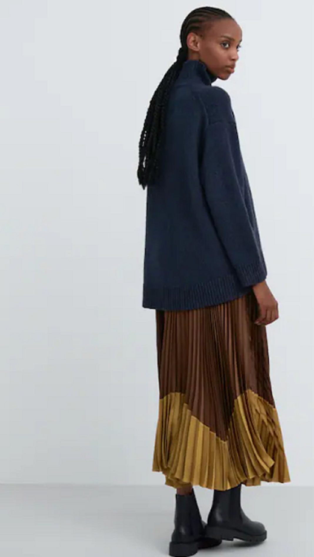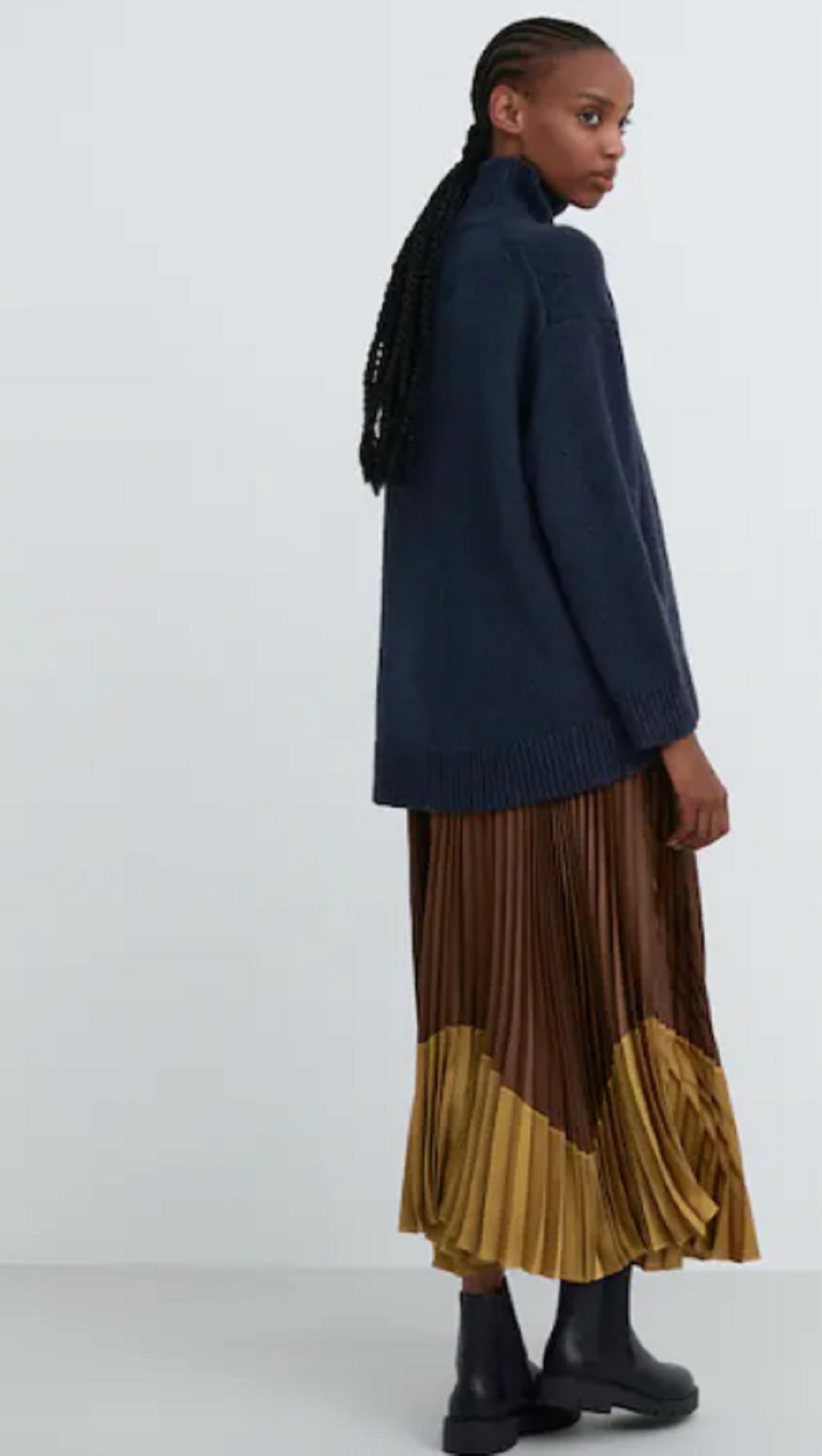 Uniqlo se ha pasado tres pueblos con esta preciosidad. También pertenece a la colección LifeWear creada por Clare Waight Keller. La naturalidad es el punto fuerte, con un punto de elegancia que nunca viene mal. Aunque no sea de un solo color, esta falda plisada tiene la falda plisada para ser una estupenda aliada en tu fondo de armario. Los básicos atemporales siempre consiguen reinventar looks aburridos. Esta combinación de amarillo y marrón es imposible de describir con palabras. Simplemente se trata de una obra maestra que materializa la frase tan conocida “menos es más”. ¡Y vaya si es más! ¿Tienes un evento de lujo y todavía no sabes qué ponerte? ¿Quieres ir arreglada a esa cena de trabajo que puede ser la puerta hacia un ascenso? ¡No lo pienses más! Por 59,90 euros puede ser tuya.