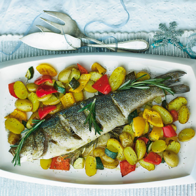 - Coloca la lubina en el horno precalentado y cocina durante 20-25 minutos o hasta que la piel esté dorada y la carne se desprenda fácilmente.