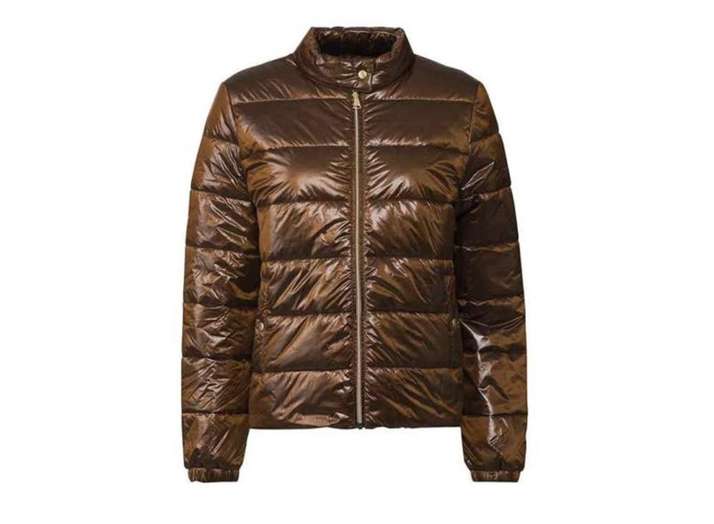 El llamativo color marrón chocolate con acabado brillante de esta prenda es un verdadero acierto. No solo aporta glamour a tus outfits de otoño e invierno, sino que también se destaca por su calidad. El acolchado, a pesar de ser ligero, proporciona una calidez excepcional y conserva su color vibrante incluso después de numerosos lavados.