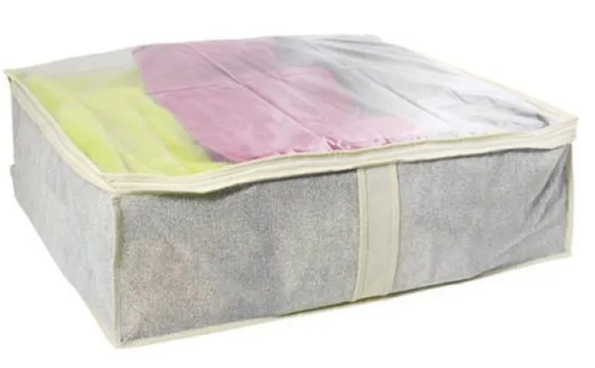 Otra buena forma de guardar tu ropa es utilizando fundas como esta. De tamaño rectangular, podrás guardar todas tus prendas en su interior para después colocarla en la parte superior del armario o dentro del canapé de la cama. Una de las grandes ventajas de este producto de Carrefour es que, al estar elaborado en tela, ocupa menos espacio, pudiéndose adaptar a esos huecos muertos que todos tenemos en el dormitorio. Si la guardas en un lugar que se pueda ver, cuenta con el lateral opaco, para que no se vea su interior. Si buscas mantener el orden en tu dormitorio y hacer el cambio de armario de forma efectiva, pudiendo clasificar tus prendas para tenerlas siempre controladas, te puedes hacer con esta funda por solo 12,83 euros.