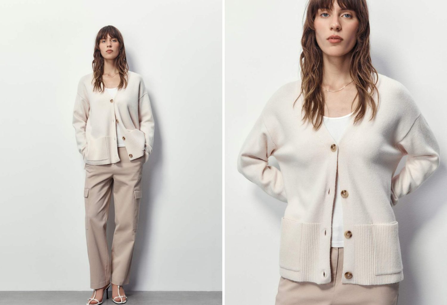 Para los amantes de la elegancia sutil, la Chaqueta de Punto con Cuello Pico en color crema, es una pieza imprescindible en el armario. Con su cierre de botones delantero y bolsillos de plastrón, no solo añade un toque de elegancia a tu atuendo, sino que también te mantiene abrigado en los días frescos de otoño. Con un precio de 25,99 €, es una inversión asequible en un estilo duradero y versátil.