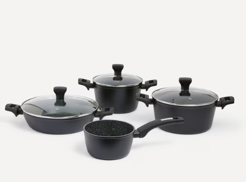 Finalizamos nuestra lista con un set que hace honor a su nombre: Excellent. Con cuatro piezas esenciales, esta batería de cocina en color negro es una declaración de estilo y calidad. Su diseño ergonómico y su acabado antiadherente hacen de cada experiencia culinaria un placer.