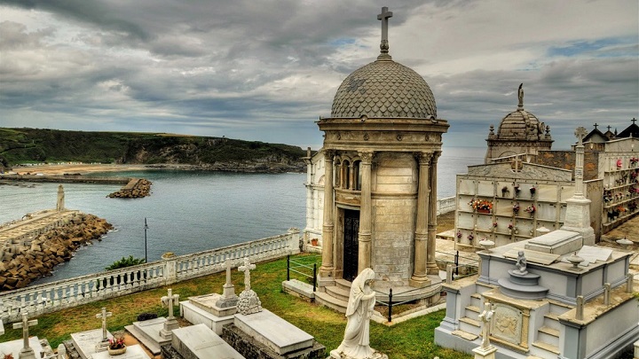 El Cementerio de Luarca en Asturias es uno de los cementerios más antiguos y hermosos de España, gracias a su ubicación privilegiada en plena costa asturiana. Se encuentra en el promontorio de la Atalaya, donde las vistas espectaculares y el aroma del mar hacen que la percepción convencional de la muerte desaparezca.