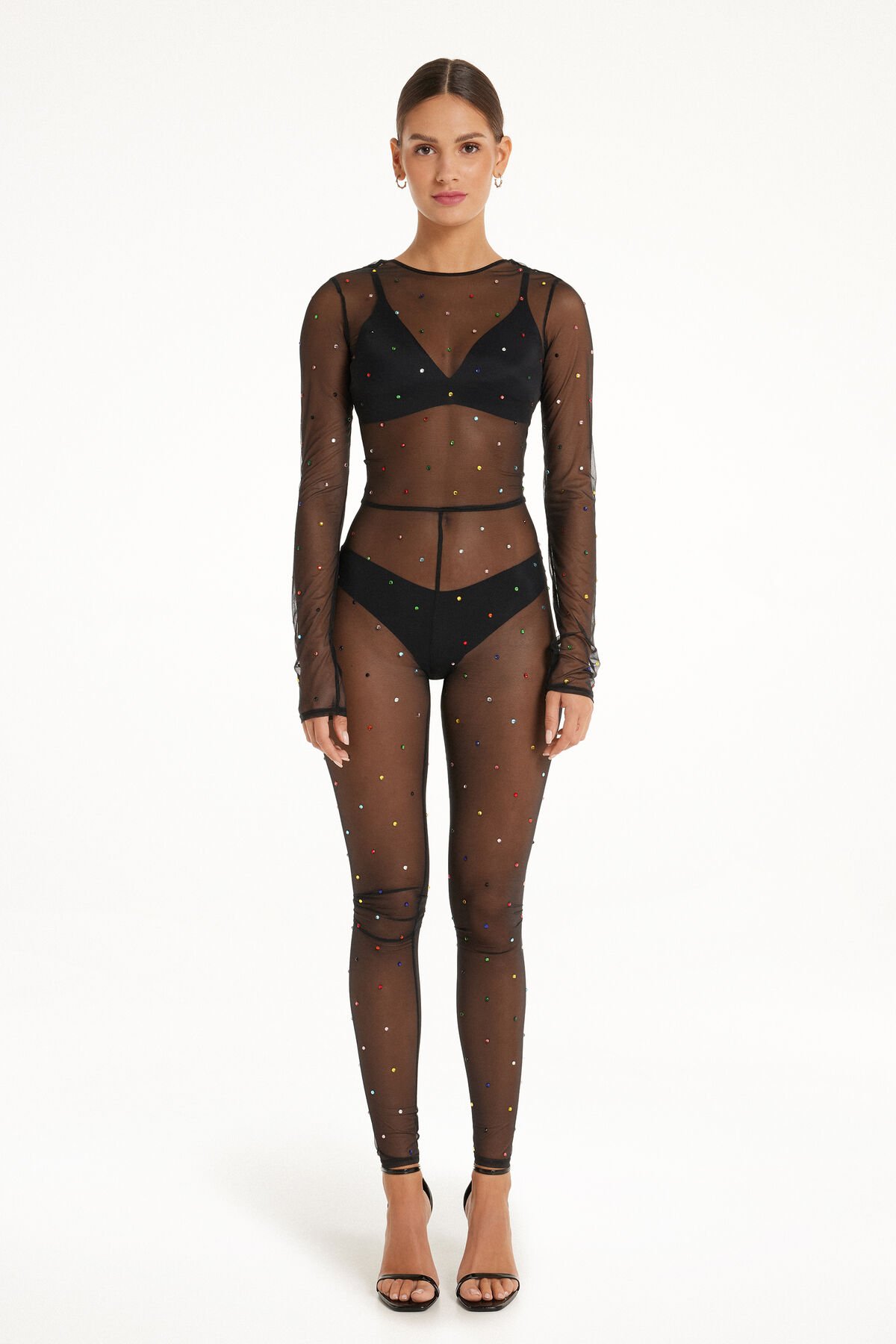 Si estás buscando otra prenda especial, debes echar un vistazo por la Edición Limitada de Tezenis. En este caso, uno de los monos que más llaman la atención es este transparente. Elaborado en tul, destaca gracias a sus adornos de strass de colores repartidos por toda la superficie, convirtiéndolo en una de las opciones más especiales para las fiestas. Ideal para crear cientos de looks distintos, ya que se puede combinar de varias formas, te puedes hacer con él en la tienda por 45,99 euros. No lo querrás dejar escapar.