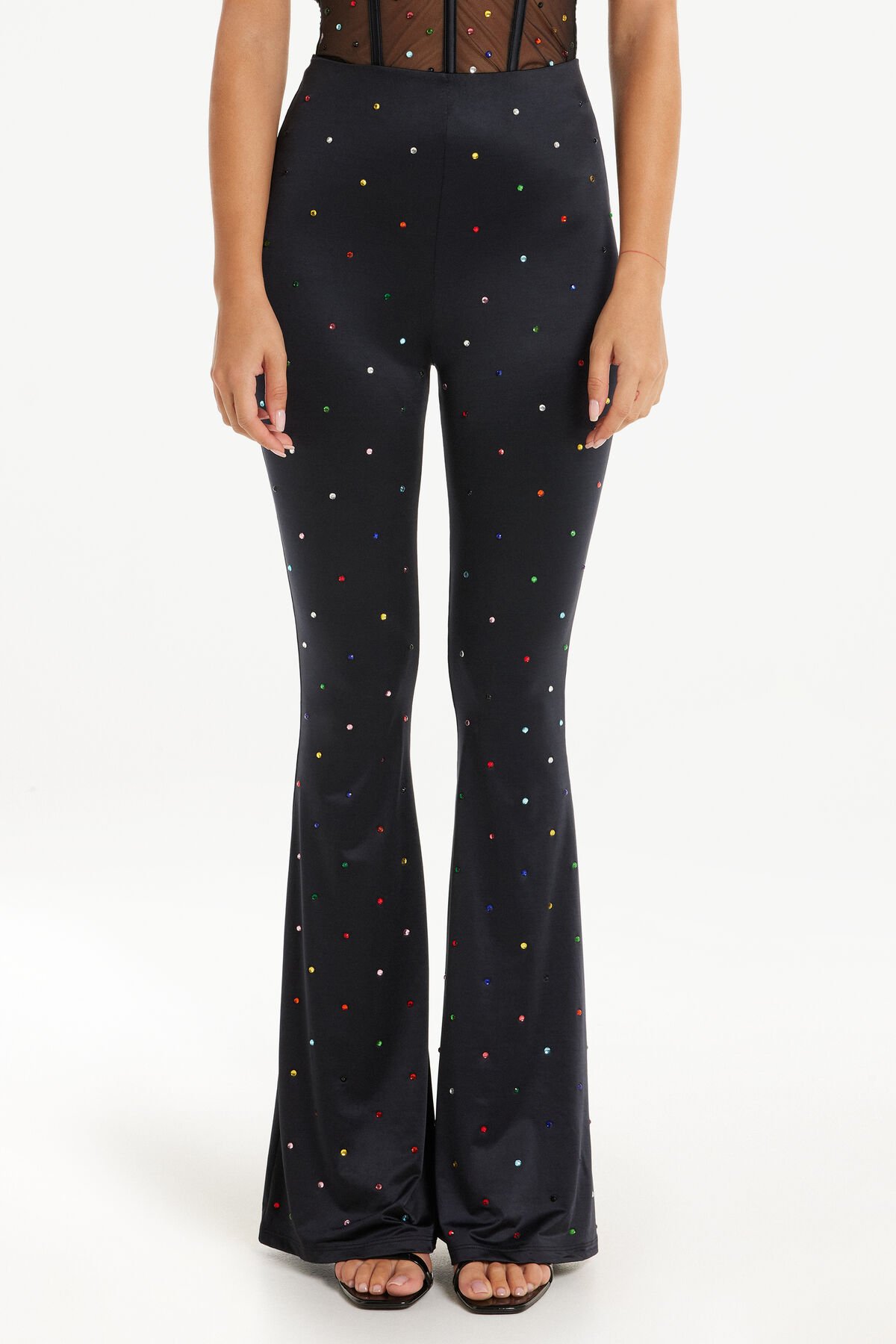 Si el mono de strass de Tezenis con detalles coloridos se ha convertido en uno de tus objetos de deseo, tampoco puedes dejar de echar un vistazo a los pantalones del mismo estilo, también de Edición Limitada. Con las mismas características que el mono anterior, estos pantalones además llaman la atención gracias a su corte acampanado, una tendencia clave de este 2023. Disponibles en color negro y elaborados con microfibra, los podrás combinar con cualquiera de tus prendas para conseguir un look elegante y de infarto. En cuanto a su precio, te puedes hacer ya con ellos por solo 49,99 euros.