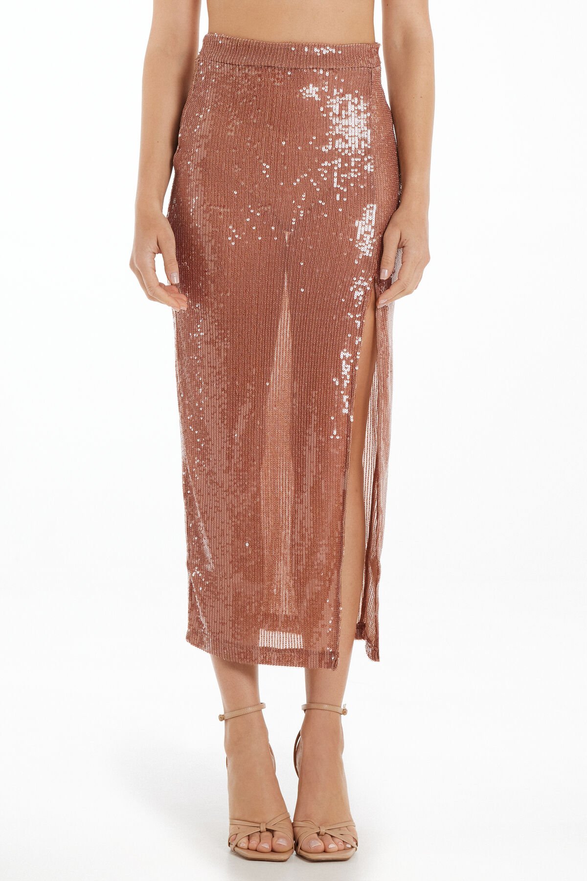 Las faldas de corte midi también se han convertido en las opciones favoritas de la temporada. Si buscas un básico para tu armario capaz de adaptarse a cualquiera de tus eventos especiales, esta falda de Tezenis será una de tus preferidas. De color nude, con diseño de tubo, abertura frontal y repleta de lentejuelas, la podrás combinar con cualquiera de tus prendas para crear un look sexy y efectivo. Si hablamos de su precio, la puedes conseguir ya en la tienda por tan solo 29,99 euros. Sin duda, una gran oportunidad para cualquier evento.