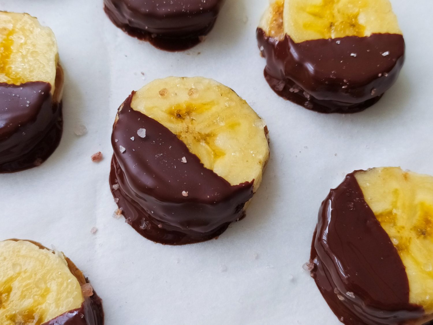 Una vez que la base de plátano esté lista, cubre esta base con crema de cacahuetes extendiéndola con cuidado con una cuchara o una espátula. Lleva la bandeja al congelador y déjala allí hasta que la mezcla esté dura y consistente. Esto puede llevar varias horas. Una vez que la mezcla esté bien congelada, saca la bandeja y esparce chocolate derretido (sin azúcar o el tipo de chocolate que prefieras) sobre la superficie de la mezcla de plátano y crema de cacahuetes.