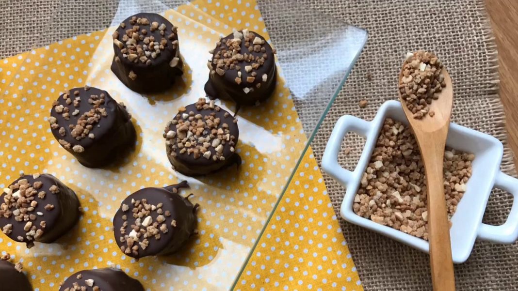 Otra opción con plátano, chocolate y cacahuetes son los bombones. En este caso necesitamos algunos ingredientes más, pero aun así se trata de un dulce muy fácil de hacer y mucho más sano y natural que los bombones de las grandes superficies. Esto es lo que vas a necesitar: