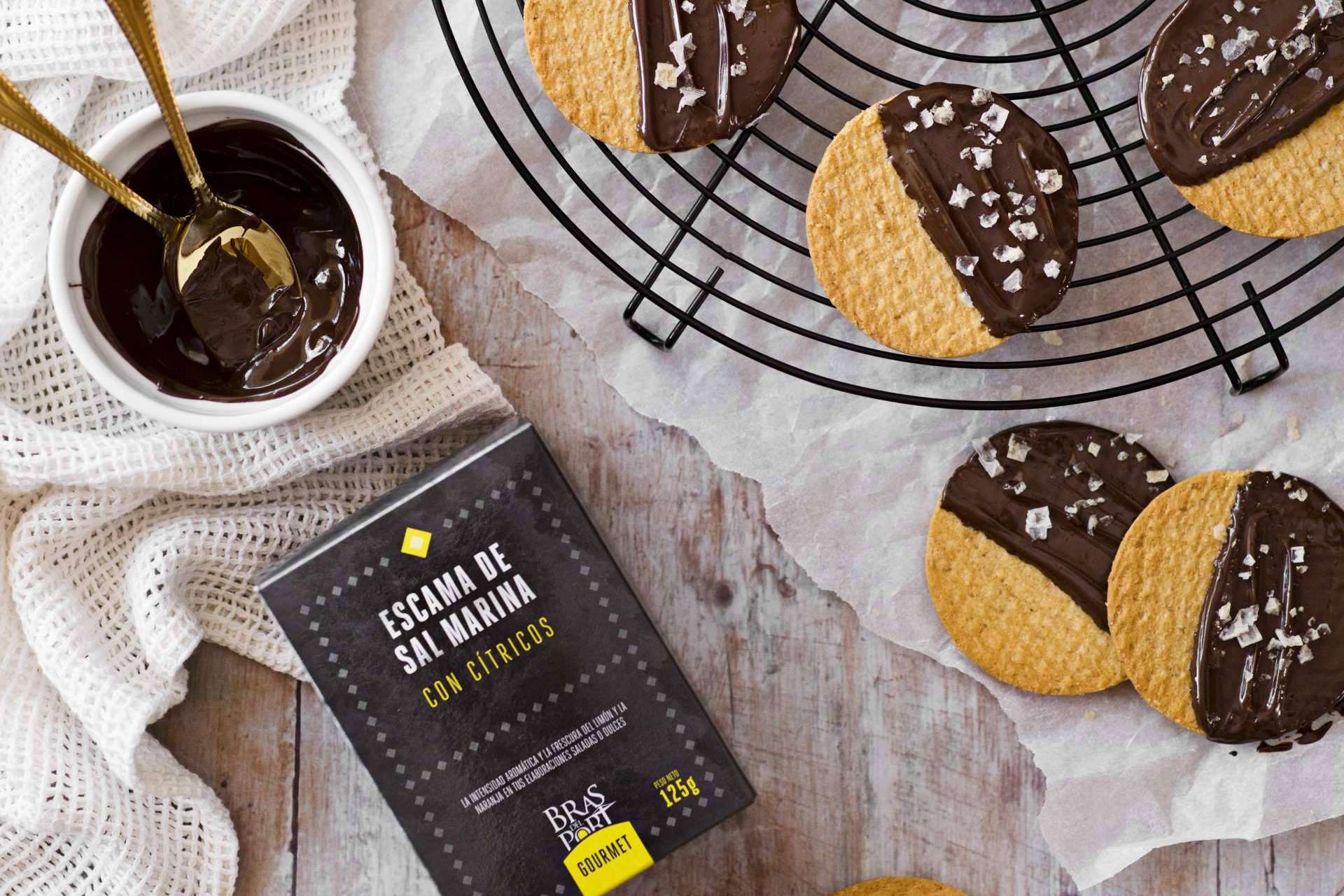 Pero su uso no se limita a los sabores salados, sino que en el ámbito de la repostería también ofrece muchas posibilidades, potenciando el contraste con el dulzor de chocolates o caramelos. Un ejemplo interesante y fácil donde se puede aplicar son los trozos de fruta fresca, bañada en chocolate negro con una pizca de sal en escamas por encima.