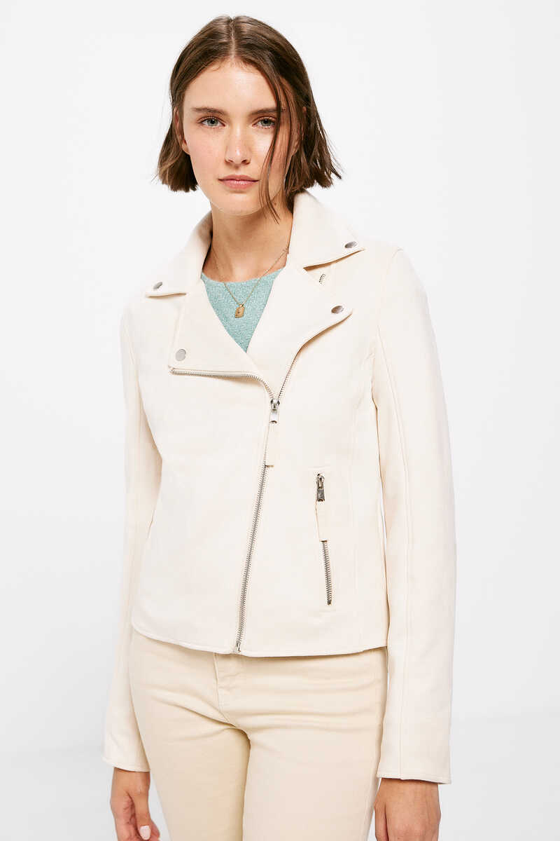 Las cazadoras de estilo motero llaman la atención gracias a su agresividad y por lo bien que quedan en cientos de looks. Sin embargo, si lo que buscas es un efecto más suave e incluso sofisticado, otra buena idea es apostar por una cazadora de antelina. En este caso, destaca esta de Springifield por su corte motero, pero su tejido de antelina, que te invitará a querer llevarla incluso en tus eventos más especiales. Disponible en tonos neutros como el blanco, además ahora la puedes conseguir por tan solo 24,99 euros en lugar de 49,99. De nuevo, la encontrarás a mitad de precio.