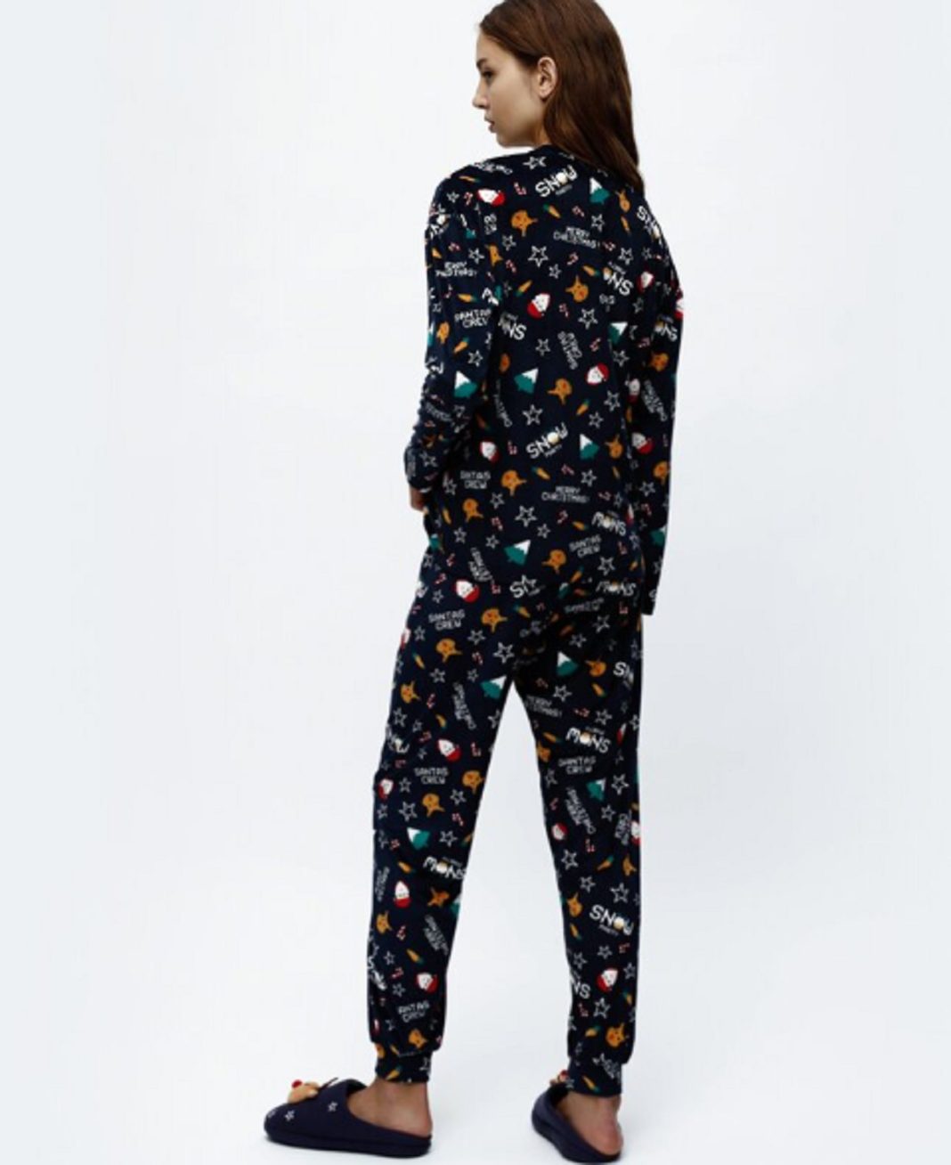 Si quieres salir del típico pijama navideño rojo, este es el tuyo sin duda. El color negro lo convierte en una pieza muy elegante en el que te vas a sentir súper cómoda. Viene con dos piezas: una camiseta de manga larga y cuello redondo y un pantalón largo de cintura elástica. Eso quiere decir que vas a poder como todo lo que quieras estas navidades que se va a ajustar a tu medida si se ensancha un poco. Está confeccionado en un tejido muy suave de terciopelo. Abrazarte será tan reconfortante como agradable, un punto más que importante en la época de reencuentros que supone la Navidad. Este producto se encuentra disponible para todos los miembros de la familia. Su precio para mujer es 12,99 euros.