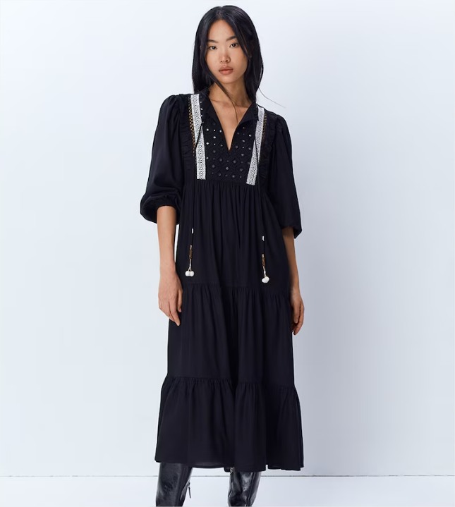 El diseño no solo es visualmente impactante, sino que además es increíblemente cómodo. Su tela suave y ligera hace que este vestido sea perfecto para los días otoñales, tanto para un evento elegante como para una cena casual. Si quieres este vestido, aquí lo encontrarás.