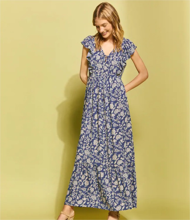 Las flores y el otoño pueden no parecer la combinación más obvia, pero el Vestido Midi con Estampado de Flores en azul marino desafía esa norma. Este vestido, disponible en El Corte Inglés, presenta un hermoso estampado floral que resulta fresco y a la vez acogedor para la temporada.