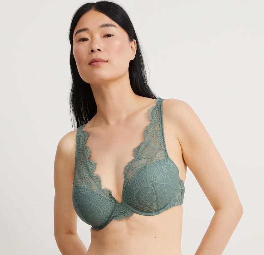 Son muchos los colores entre los que puedes elegir dentro de la sección de sujetadores de C&A. Sin embargo, siempre es recomendable hacerse con aquellos neutros que transmitan calma, paz y tranquilidad. Eso es justo lo que conseguirás con este sujetador de color verde suave, ya disponible en la tienda. Con tirante ancho elaborado con detalle de encaje, también destaca por la comodidad que aportan sus aros y su ligero relleno, perfecto para mantenerlo todo en su lugar. En cuanto a su precio, lo puedes conseguir por tan solo 22,99 euros. Sin duda, no encontrarás otro igual.