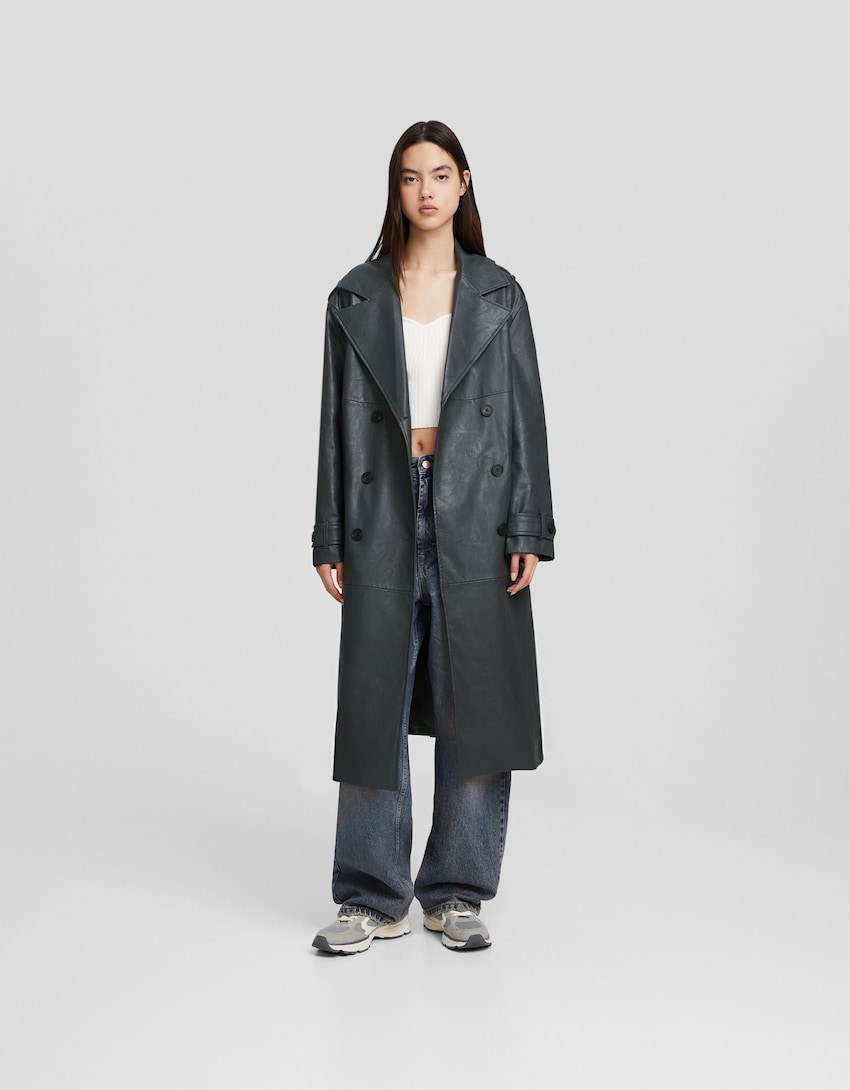 4Abrigo trench efecto piel de Bershka, también con descuento