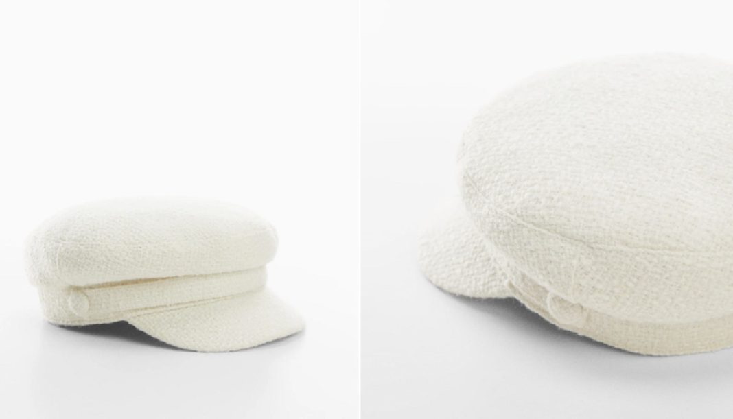 Mango nos da una clase magistral de estilo con esta belleza sobrenatural. Una exclusiva gorra de tejido tweed de un exquisito color blanco. El invierno y el otoño suelen asociarse con prendas oscuras, con tonos tierra, negros y grises. Sin embargo, esta gorra rompe con todo esto, ya que se planta con el inspirador color blanco que evoca a risas, distensión y frescura, unas emociones que comúnmente vinculamos a la temporada de verano. La realidad es que el color blanco puede ser un gran aliado en cualquier época del año. Llevar prendas y accesorios blancos suelen asociarse con la pureza y la inocencia, algo que es palpable en este modelo. De un clásico estilo marinero, ya nos ha conquistado. Su precio es 15,99 euros.