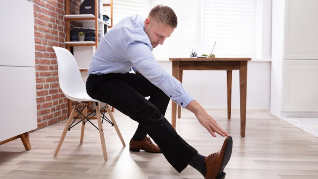 - Coloca un pie en una silla o en un cajón bajo tu escritorio.